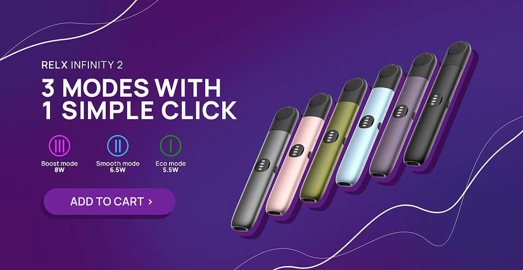 เรามาเริ่มกันที่เจ้าดังอย่าง Relx โดยรุ่นที่เรานำมาพูดถึงคือ Relx รุ่น infinity จากข้อสงสัยว่า infy กับ relx ต่างกันยังไง สำหรับตัวเครื่องบุหรี่ไฟฟ้าของ relx infinity นั้นถือว่าเป็นมีดีไซน์ที่สวยงามซึ่งเป็นจุดเด่นสำหรับทาง Relx อยู่แล้ว สำหรับ พอตเปลี่ยนหัว RELX ตัวเครื่องนั้นได้รางวัลทางด้านการออกแบบที่สวยงามอีกด้วย ฟิลลิ่งการสูบที่ดีสมกับที่เป็นรุ่นนิยม ตัวเรื่องมีสีสันหลากหลาย โดยแบตเตอรี่นั้นมีควาจุอยู่ที่ 380 mAh หากชาร์จเต็มสามารถใช้งานได้ถึง 3 วัน โดยการชา่ร์จผ่านรู USB type-C ที่สามารถชาร์จได้เร็ว ชาร์จเพียง 45 นาทีเต็มพร้อมใช้งาน หัวพอต Relx ที่ใช้งานง่าย ตัวเครื่องมาพร้อมระบบสั้นเตือนการใช้งานเพื่อความปลอดภัยของผู้สูบ อีกทั้งยังมีไฟสถานะแจ้งเตือน และราคาเครื่องที่่สมคุณภาพ ทำให้พอตรีแลค Relx รุ่น Infinity เป็นหนึ่งในตัวเลือกสำหรับนักสูบบุหรี่ไฟฟ้าหลายๆคน